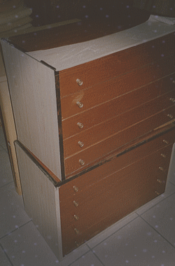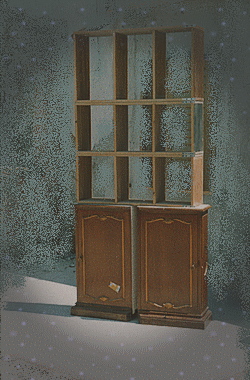 La parte superiore era pezzo da discarica: libreria fatta di pezzi di truciolare di vario genere.