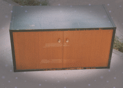 Due mobiletti ad angoli contrapposti fatti diventare uno ricostruendo gli spigoli mancanti.