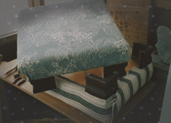 ...la vecchia chitarra, "rivisitata" a decoupage, cuscini...