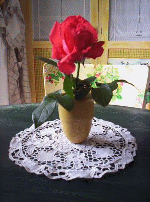 ...in the kitchen... tavolo ricostruito, sedia fragole, e sullo sfondo, la vecchia credenza di mio papà...